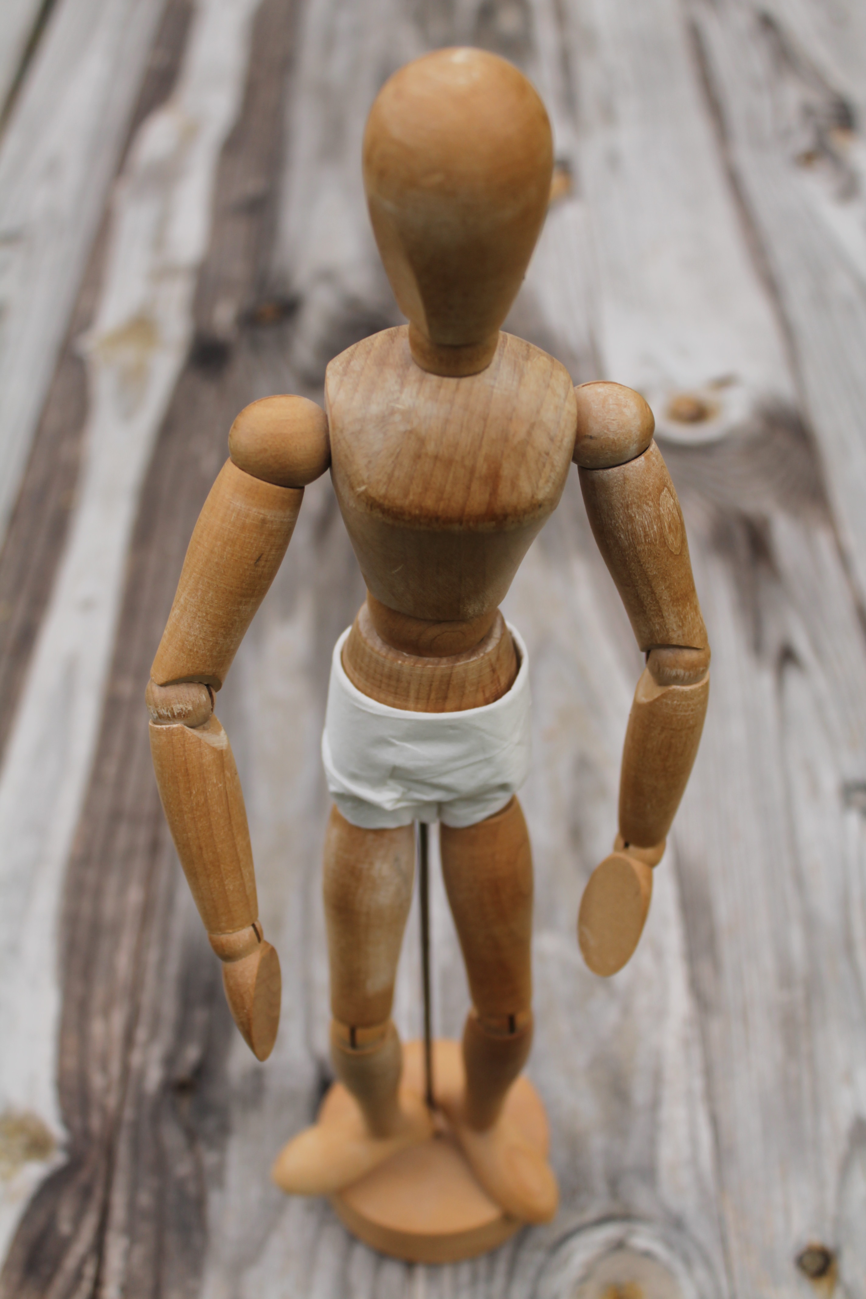 - Nehmen Sie die gefaltete Vorlage und legen Sie diese durch die Beine von vorne nach hinten. Der größere Teil gehört nach hinten.